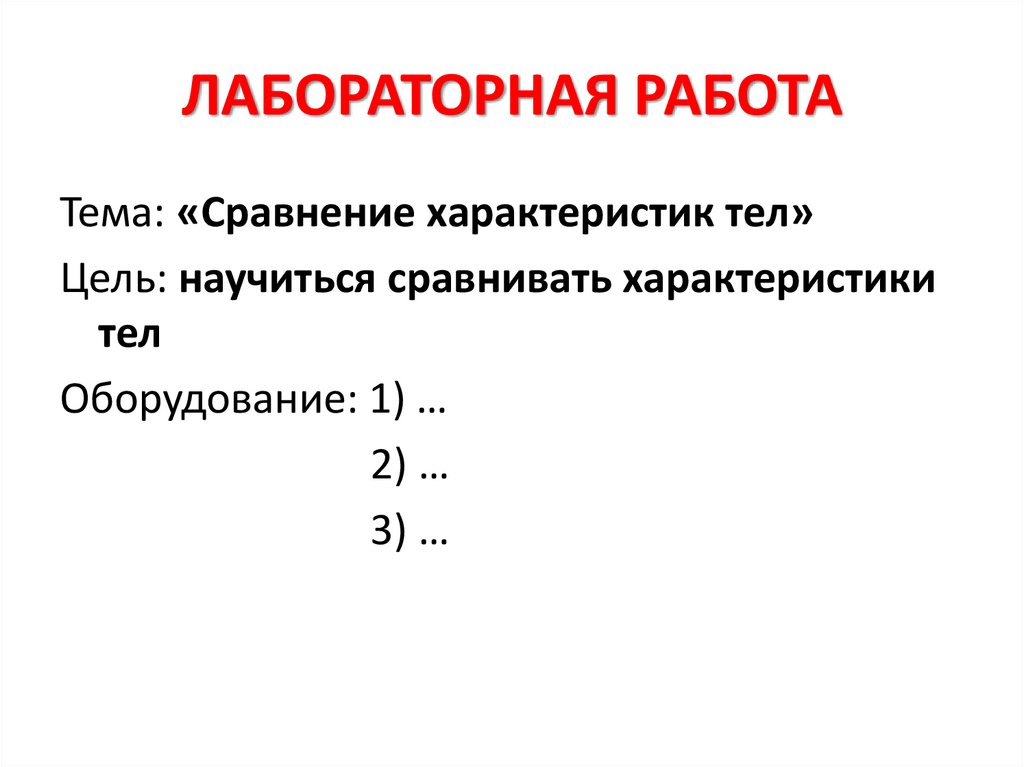 ЛАБОРАТОРНАЯ РАБОТАТема: «Сравнение характеристик тел»