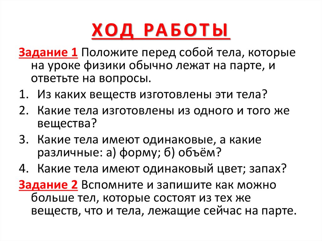 Х О Д РА Б О Т ЫЗадание 1 Положите перед собой тела, которые