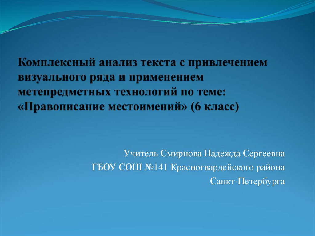 1. Комплексный анализ текста с привлечением визуального ряда и применением метепредметных технологий по теме: «Правописание
