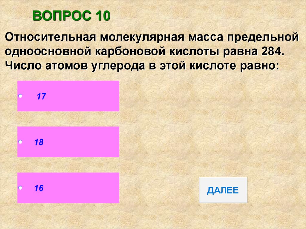 ВОПРОС 10Относительная молекулярная масса предельной