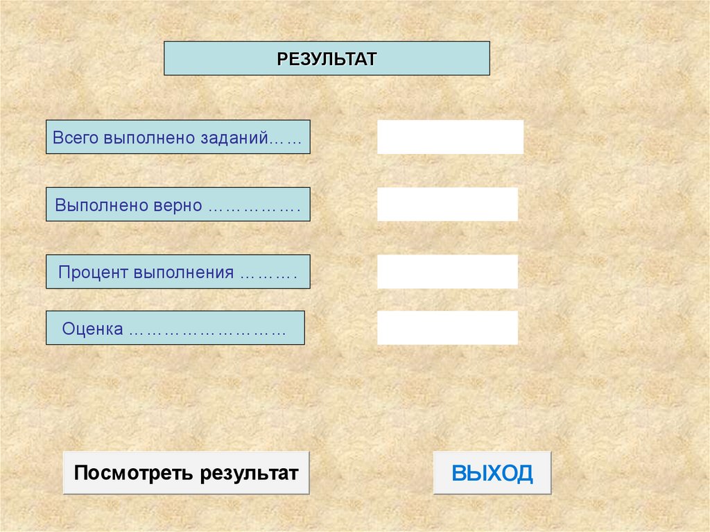 РЕЗУЛЬТАТВсего выполнено заданий……