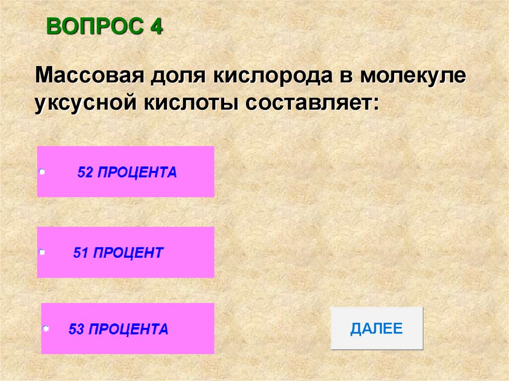 ВОПРОС 4Массовая доля кислорода в молекуле