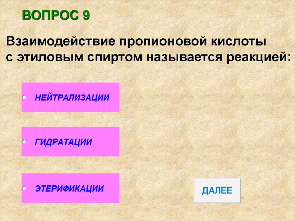 ВОПРОС 9Взаимодействие пропионовой кислоты