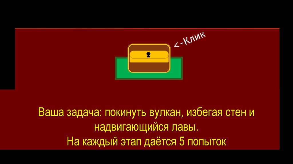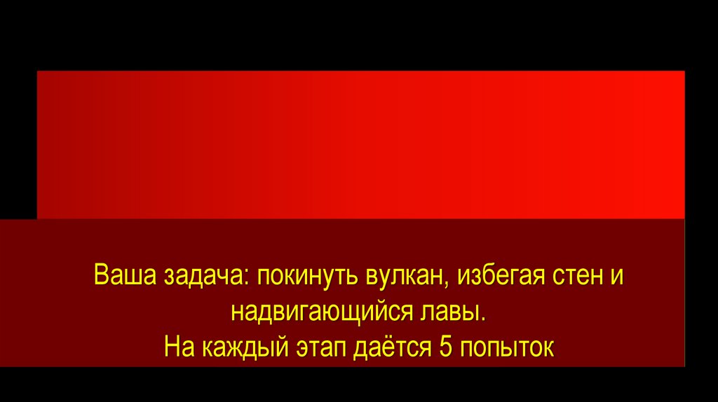 Ваша задача: покинуть вулкан, избегая стен инадвигающийся лавы.