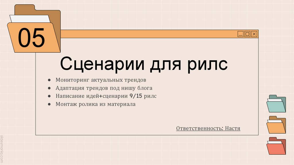 Видеосъёмка рилс● Создание сценариев рилсов, исходя из позиционирования блога