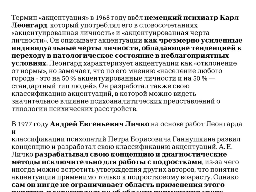личности». Он описывает акцентуации как чрезмерно усиленные