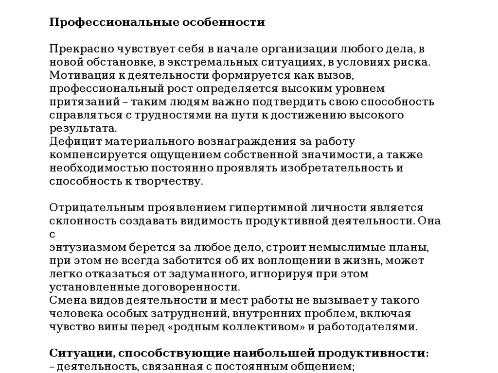 Профессиональные особенностиПрекрасно чувствует себя в начале организации любого дела, в