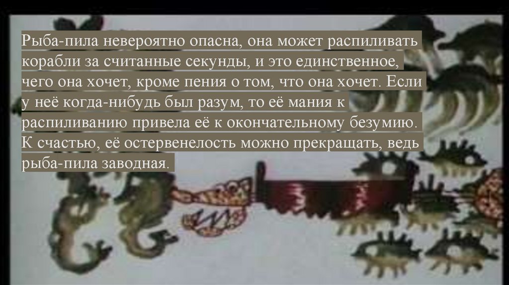 Рыба-пила невероятно опасна, она может распиливатькорабли за считанные секунды, и это единственное,