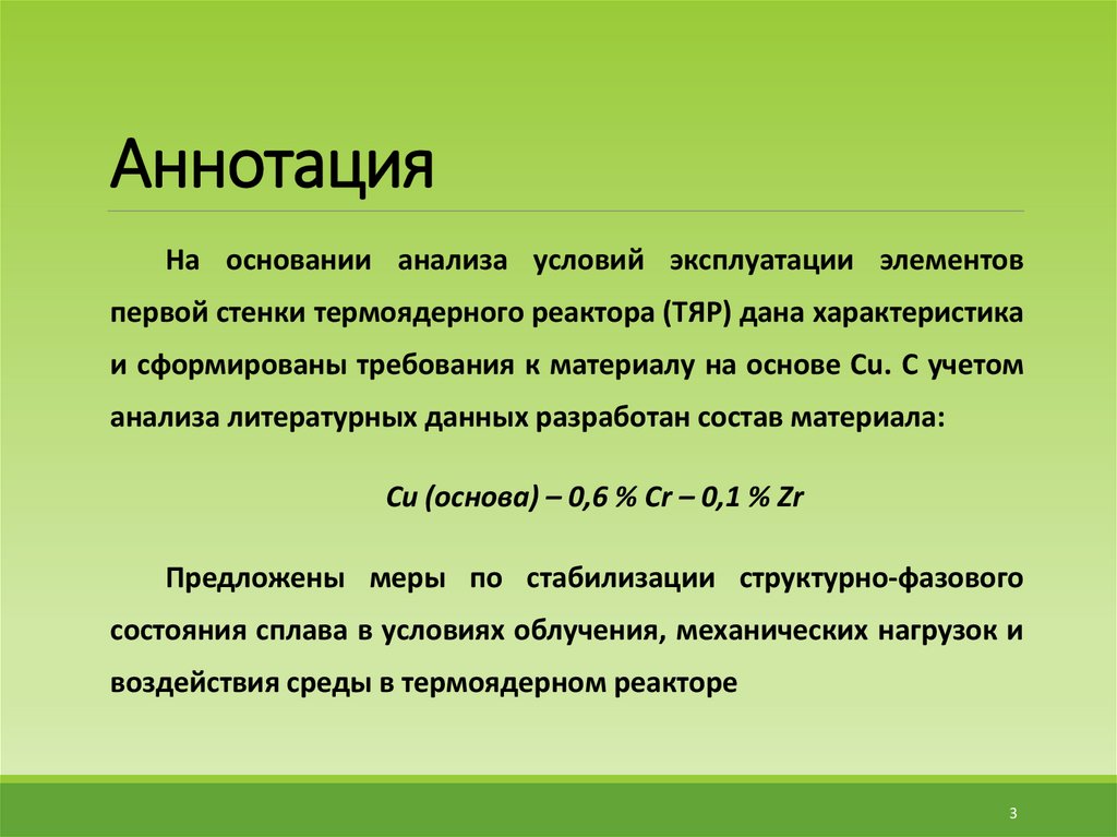 и сформированы требования к материалу на основе Cu. С учетом