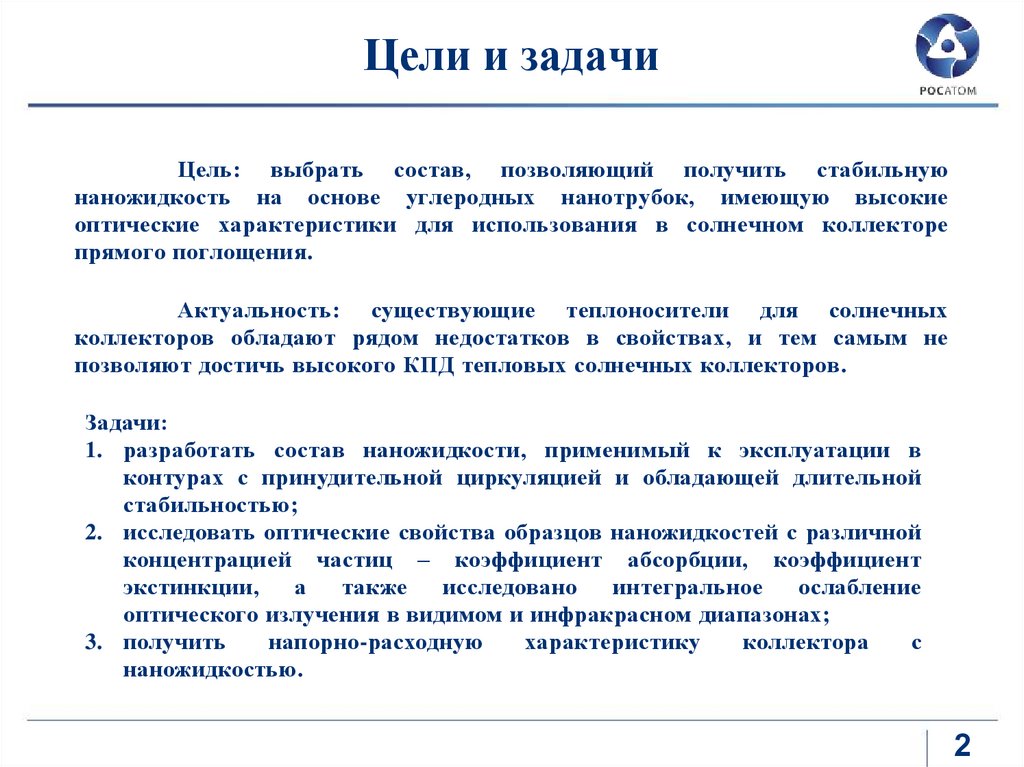 1. разработать состав наножидкости, применимый к эксплуатации в