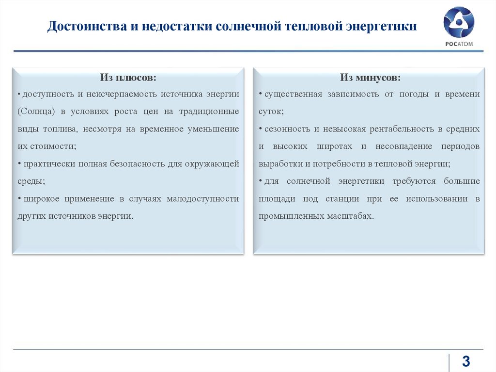 Достоинства и недостатки солнечной тепловой энергетикиИз плюсов: