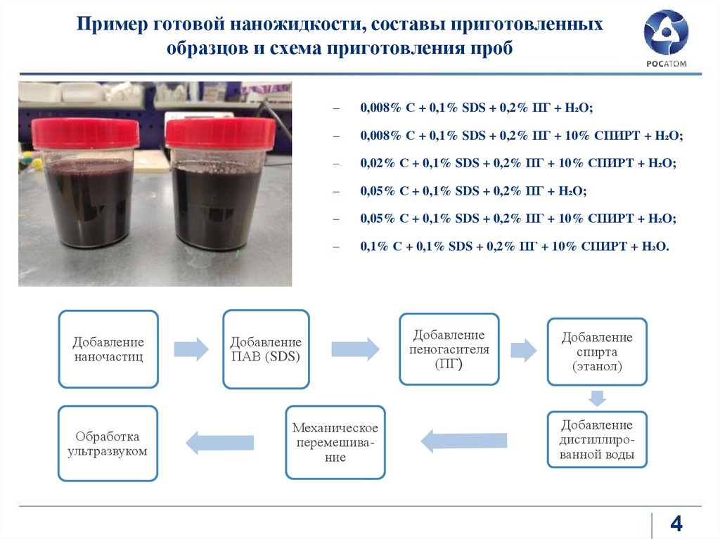 Пример готовой наножидкости, составы приготовленныхобразцов и схема приготовления проб