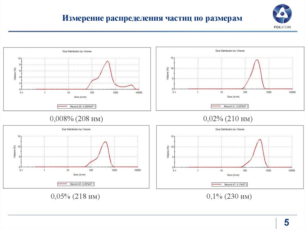 Измерение распределения частиц по размерам0,008% (208 нм)