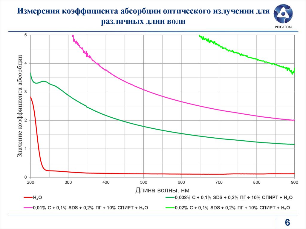 Измерения коэффициента абсорбции оптического излучении дляразличных длин волн
