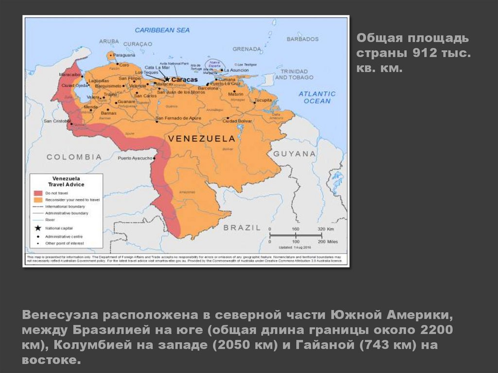 км), Колумбией на западе (2050 км) и Гайаной (743 км) на