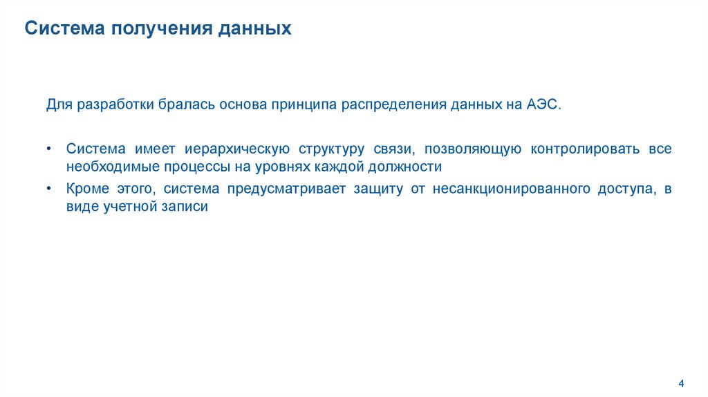 Система получения данныхДля разработки бралась основа принципа распределения данных на АЭС.