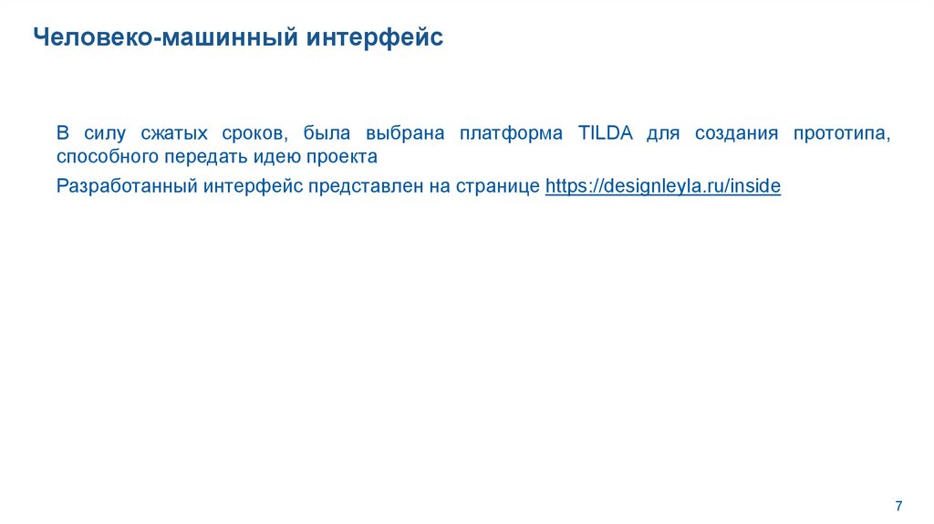 Человеко-машинный интерфейсВ силу сжатых сроков, была выбрана платформа TILDA для создания прототипа,