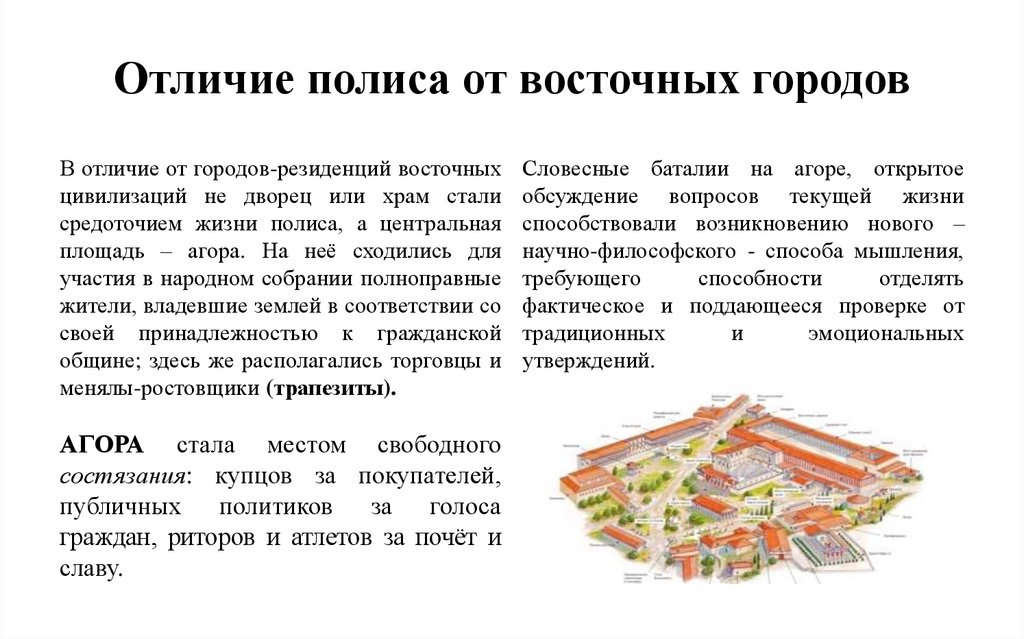 Отличие полиса от восточных городов