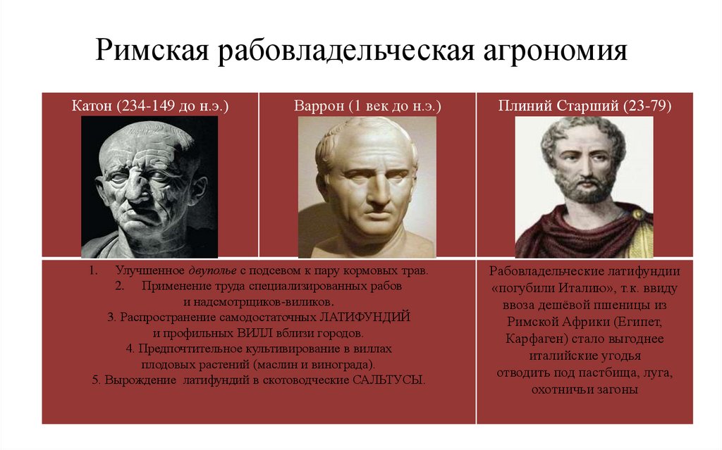 Римская рабовладельческая агрономияКатон (234-149 до н.э.)