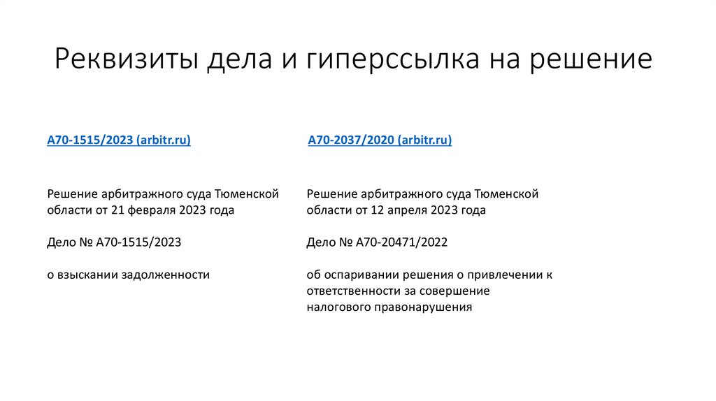 Реквизиты дела и гиперссылка на решениеА70-1515/2023 (arbitr.ru)