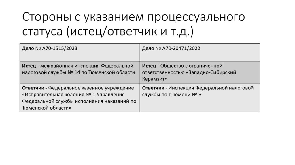Стороны с указанием процессуальногостатуса (истец/ответчик и т.д.)