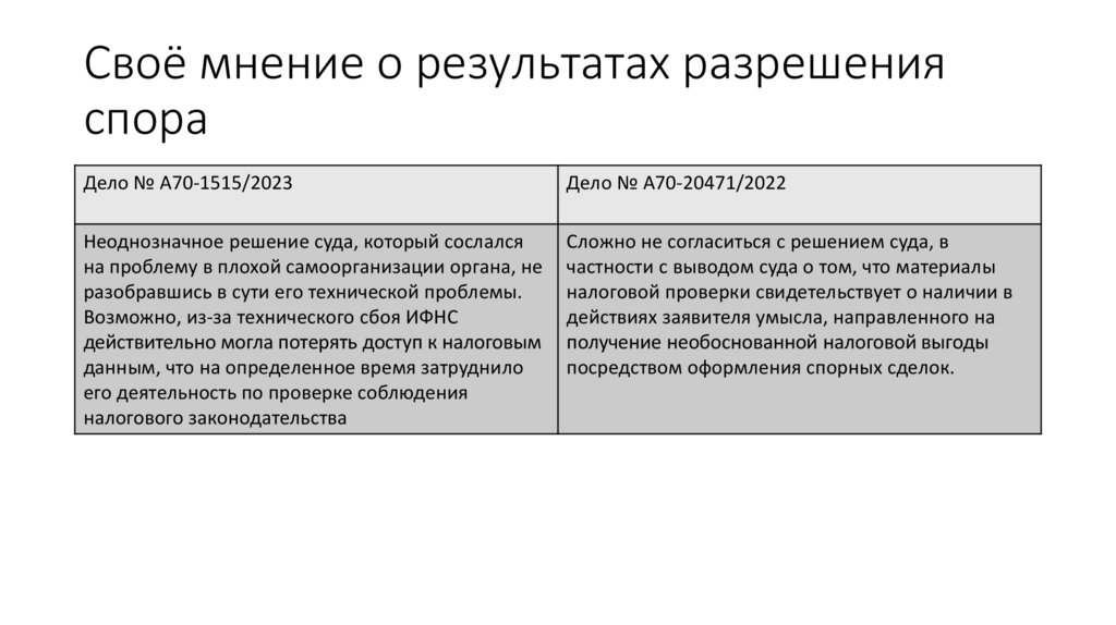 Своё мнение о результатах разрешенияспора