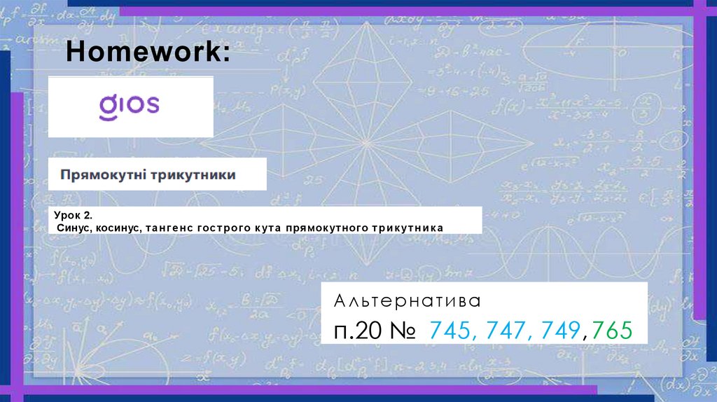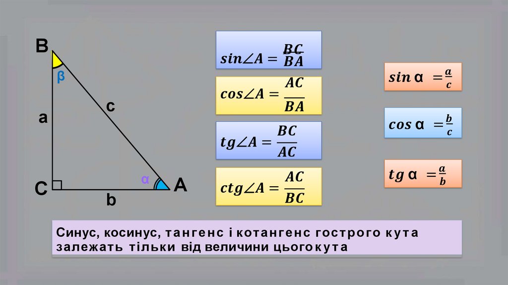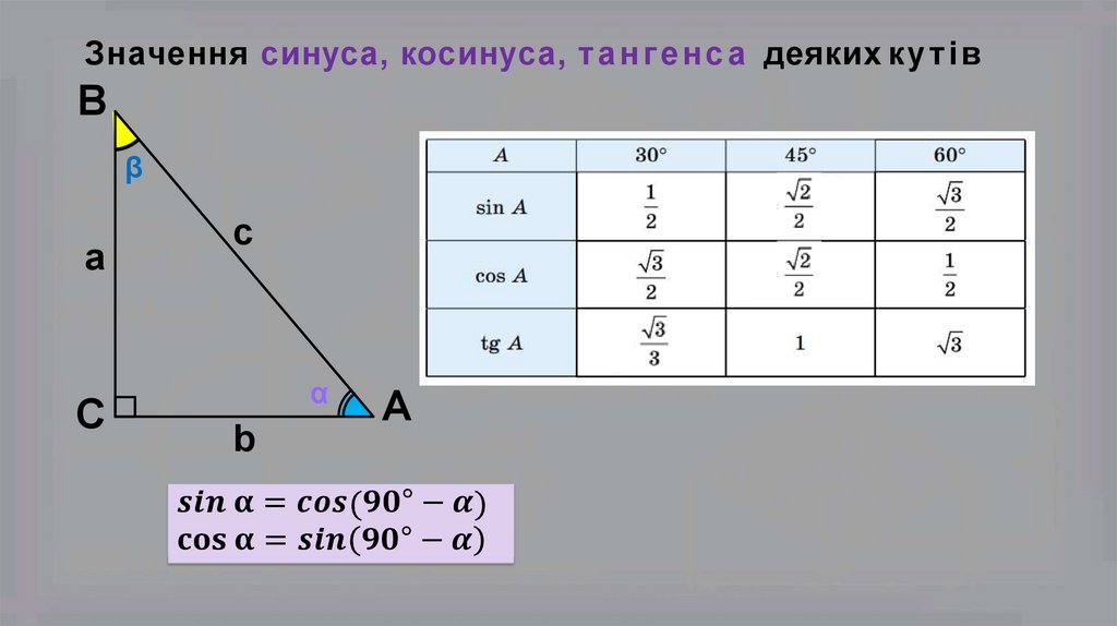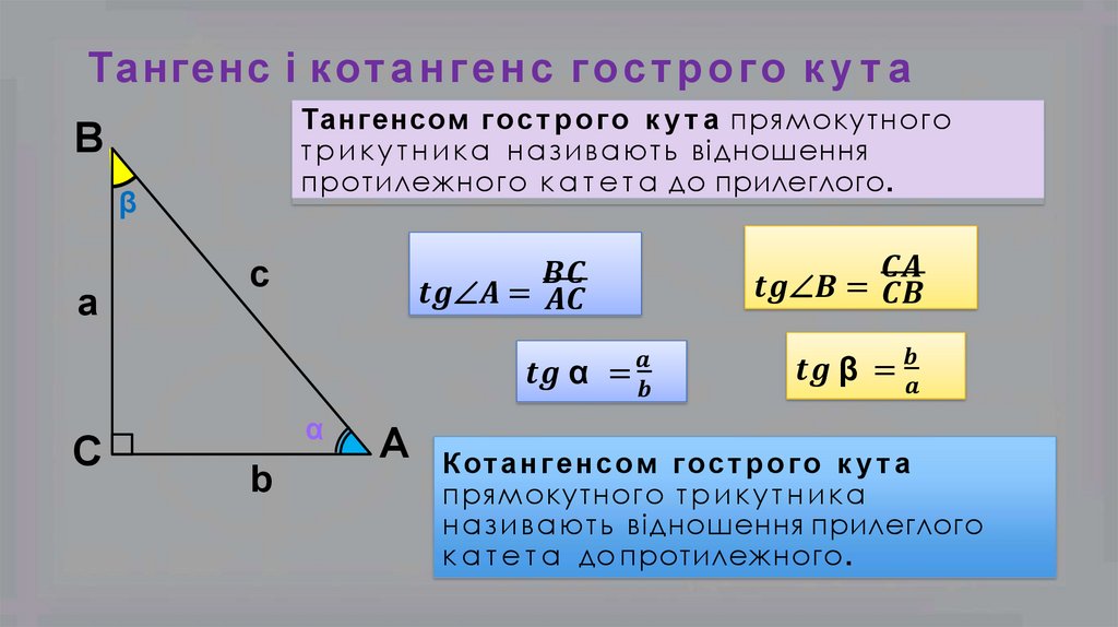 Синус, косинус, т а н г е н с ік от а н г е н с г о с т р о г о к у т а
