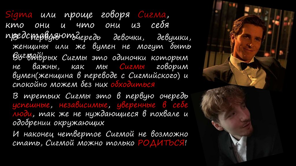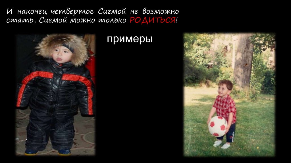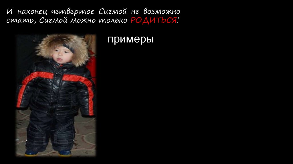 И наконец четвертое Сигмой не возможностать, Сигмой можно только РОДИТЬСЯ!