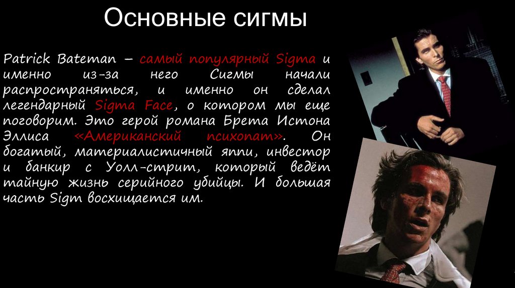 Основные сигмыPatrick Bateman – самый популярный Sigma и