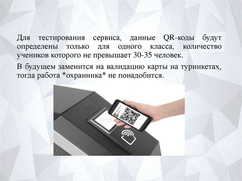 Для тестирования сервиса, данные QR-коды будутопределены только для одного класса, количество
