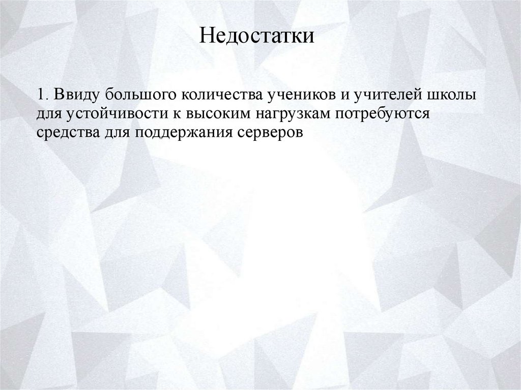 Недостатки1. Ввиду большого количества учеников и учителей школы