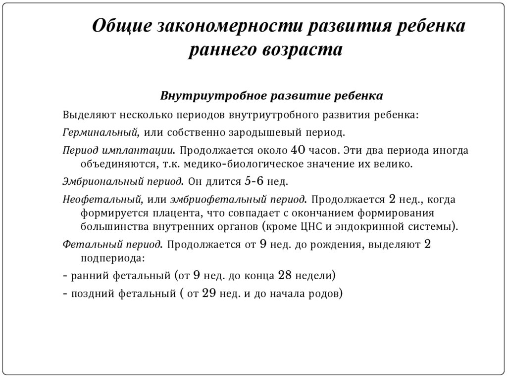 Выделяют несколько периодов внутриутробного развития ребенка: