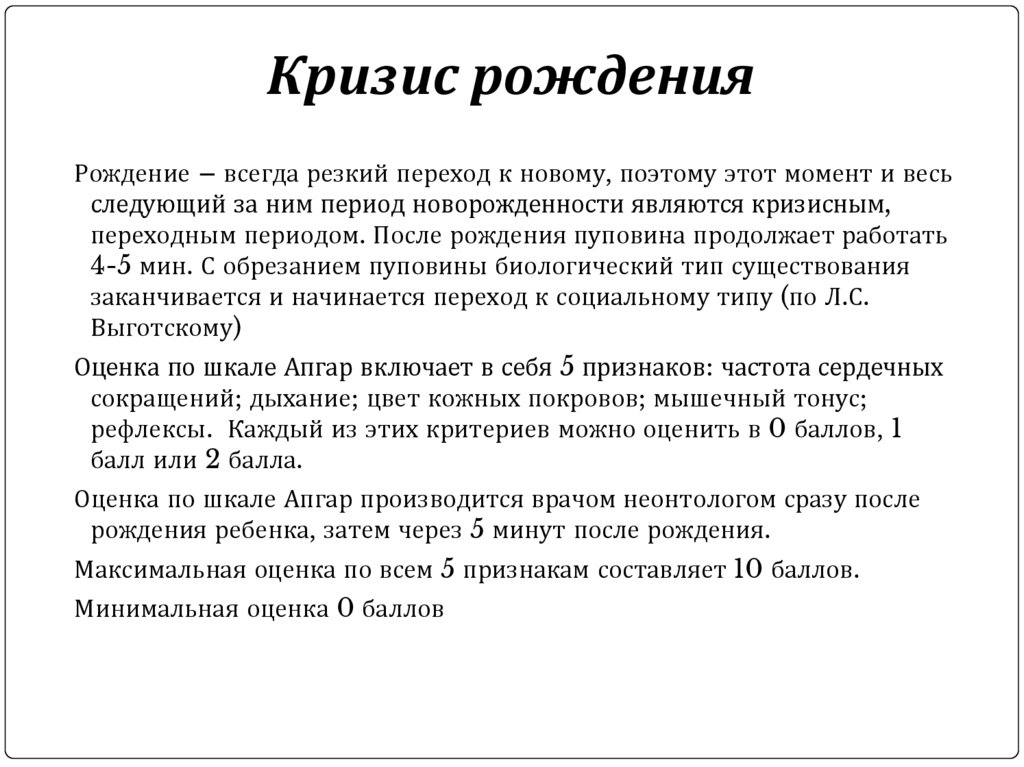 Кризис рожденияРождение – всегда резкий переход к новому, поэтому этот момент и весь