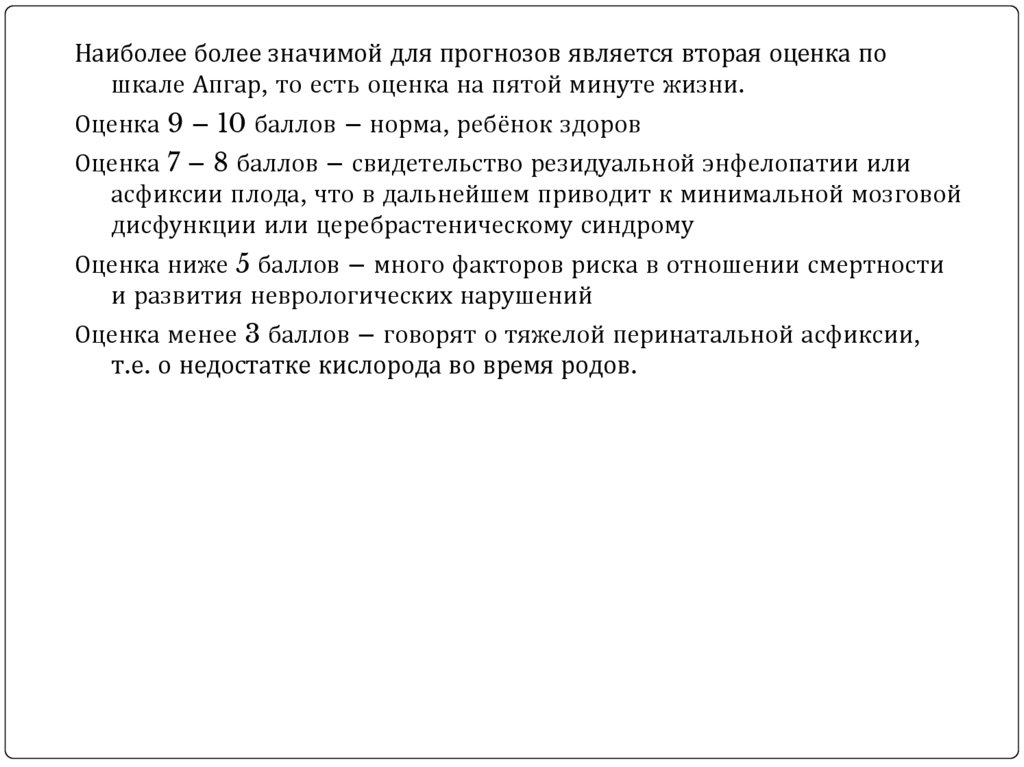 Наиболее более значимой для прогнозов является вторая оценка пошкале Апгар, то есть оценка на пятой минуте жизни.