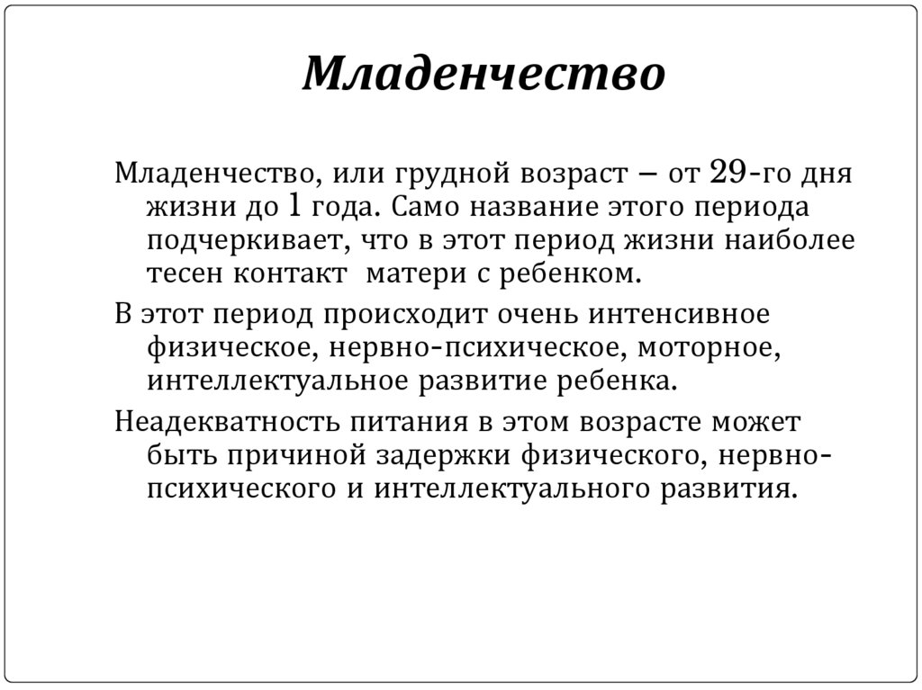 МладенчествоМладенчество, или грудной возраст – от 29-го дня