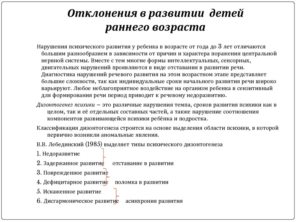 Дизонтогенез психики – это различные нарушения темпа, сроков развития психики как в