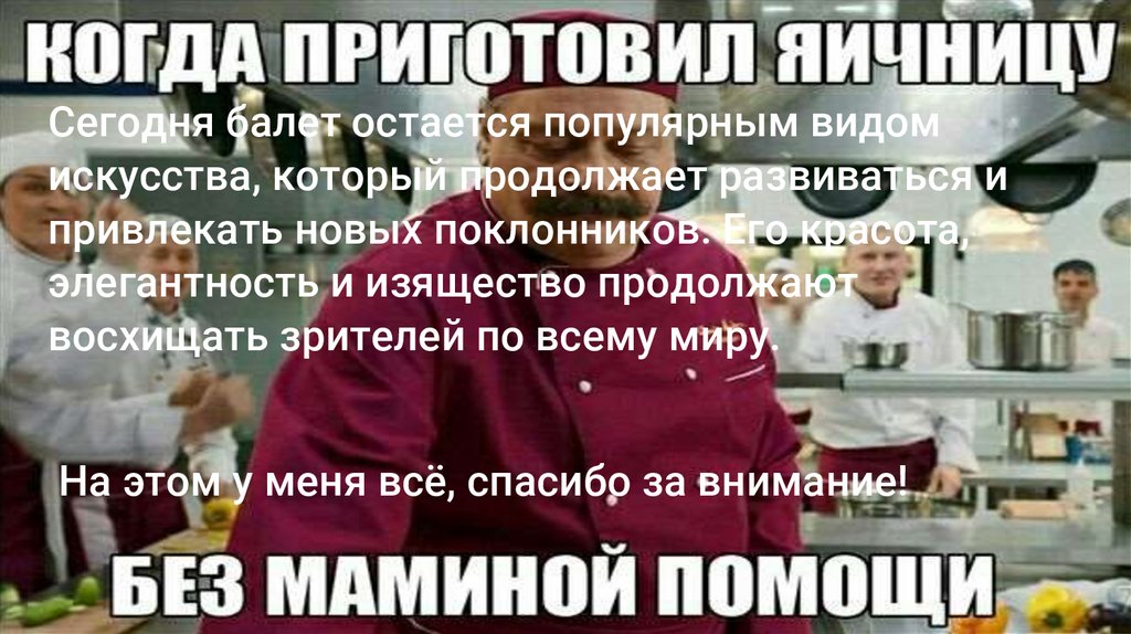 Сегодня балет остается популярным видомискусства, который продолжает развиваться и