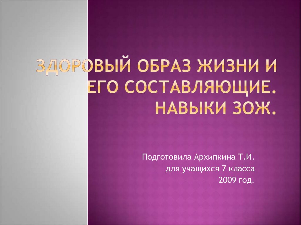 Здоровый образ жизни и его составляющие. Навыки ЗОЖ