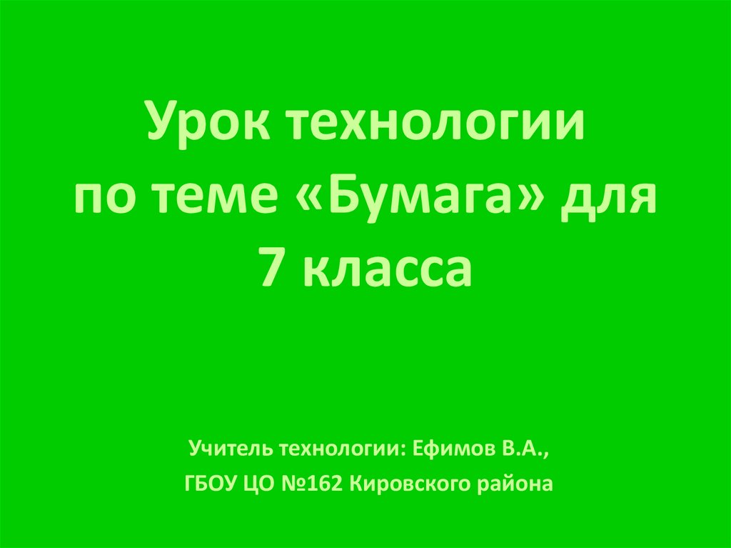 Учитель технологии: Ефимов В.А.,ГБОУ ЦО №162 Кировского района
