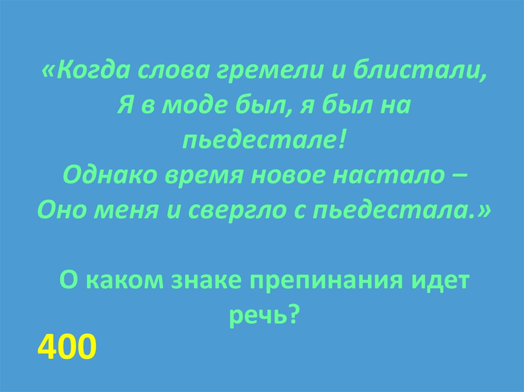 «Когда слова гремели и блистали,Я в моде был, я был на