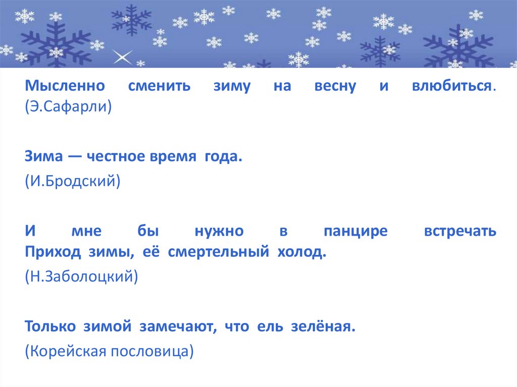 Зима — честное время года.