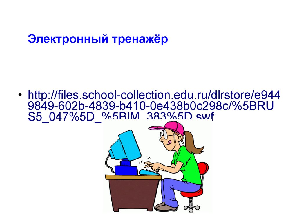 Электронный тренажёрhttp://files.school-collection.edu.ru/dlrstore/e944