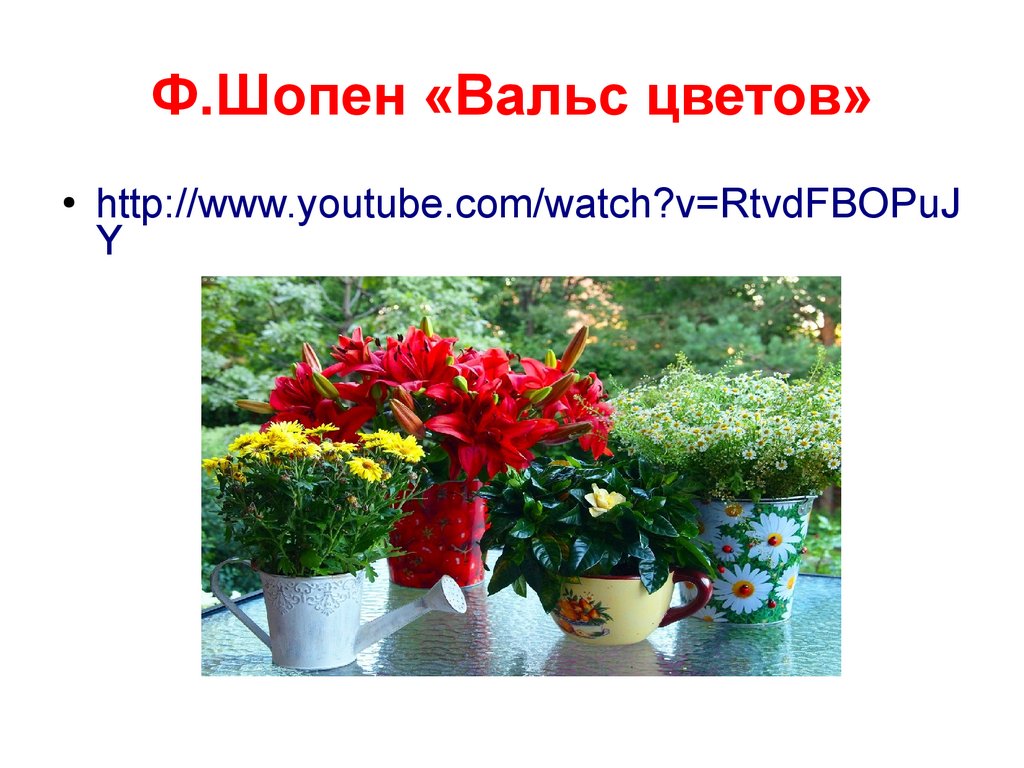 Ф.Шопен «Вальс цветов»http://www.youtube.com/watch?v=RtvdFBOPuJ