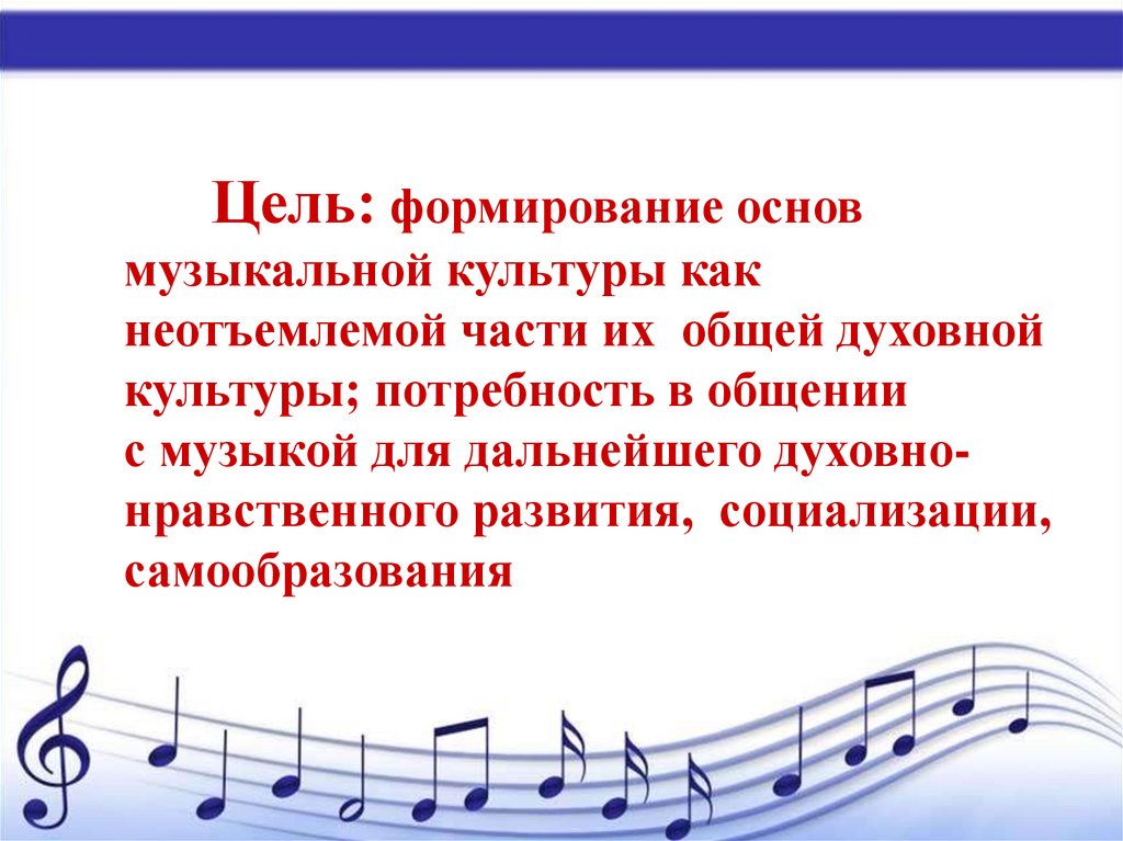 Цель: формирование основмузыкальной культуры как