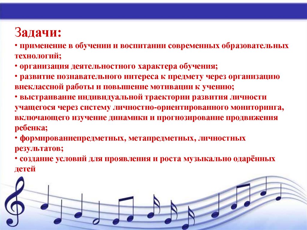Задачи:• применение в обучении и воспитании современных образовательных