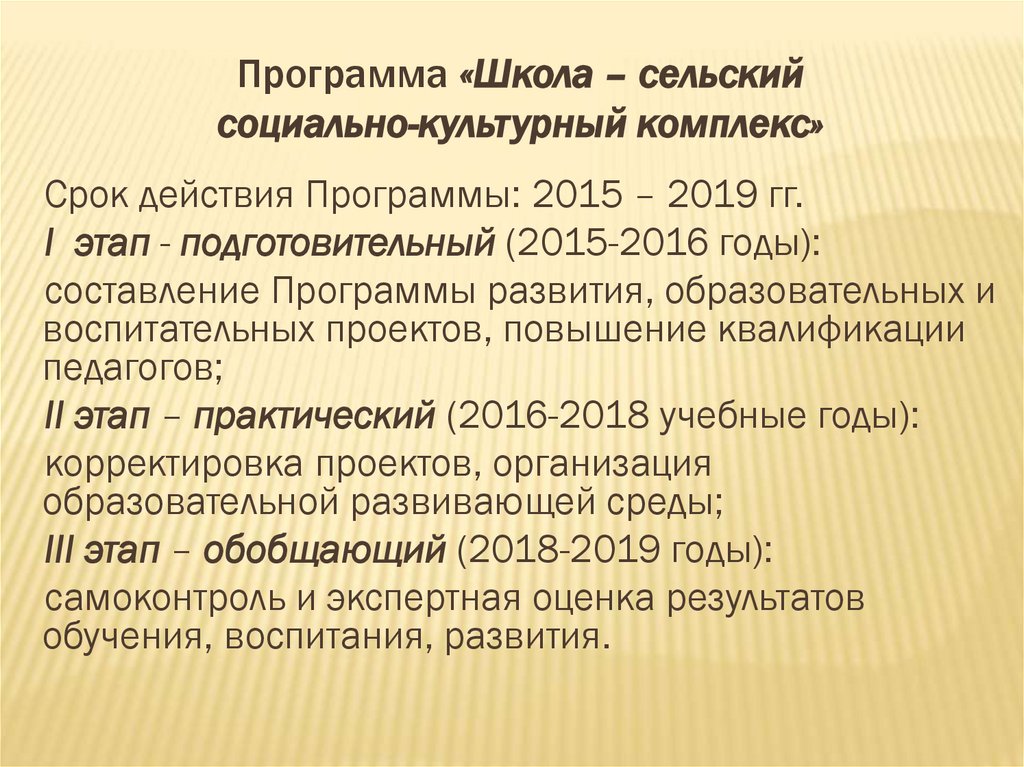 Программа «Школа – сельскийсоциально-культурный комплекс»