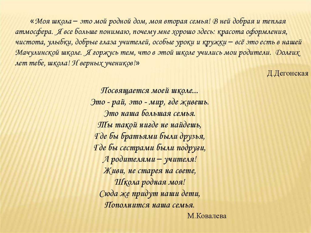Мачулинской школе. Я горжусь тем, что в этой школе учились мои родители. Долгих