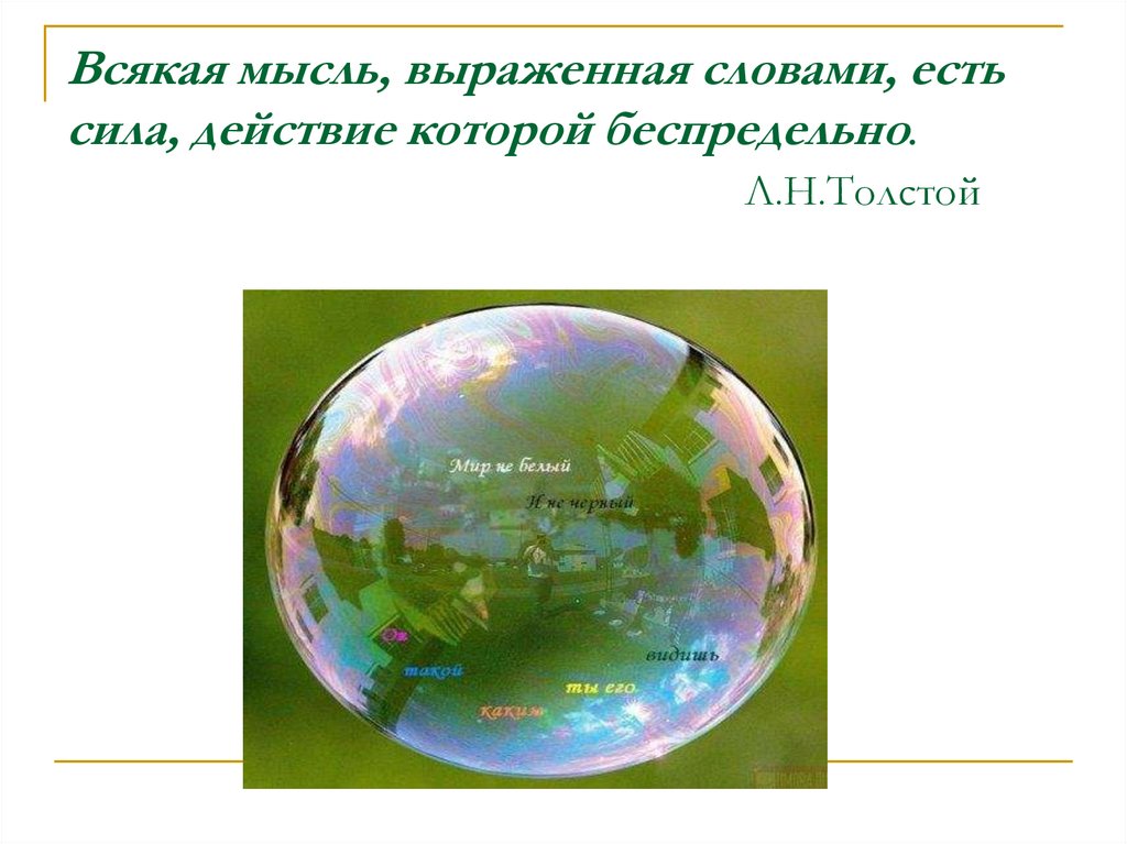 1. Всякая мысль, выраженная словами, есть сила, действие которой беспредельно. Л.Н.Толстой