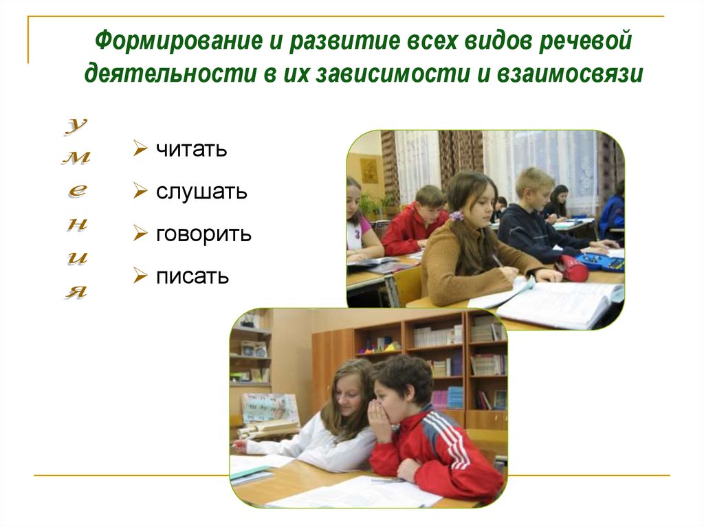 Формирование и развитие всех видов речевойдеятельности в их зависимости и взаимосвязи