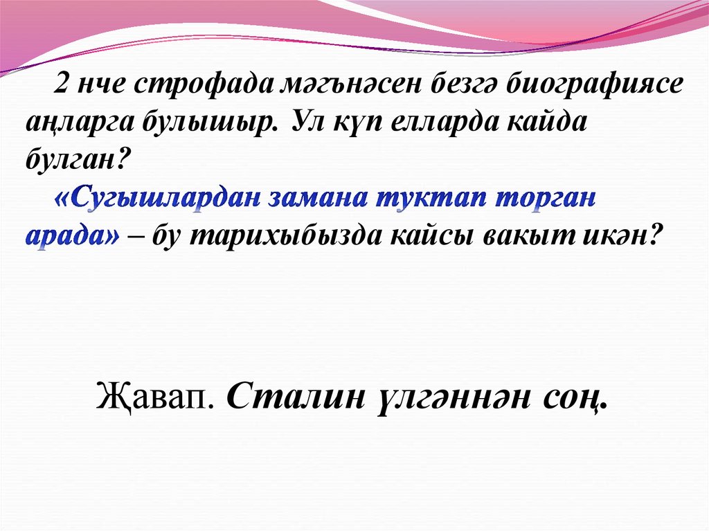 2 нче строфада мәгънәсен безгә биографиясеаңларга булышыр. Ул күп елларда кайда